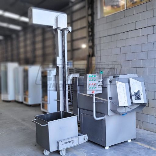 Mezcladora 400lts con clapetas neumáticas + Elevador de carro